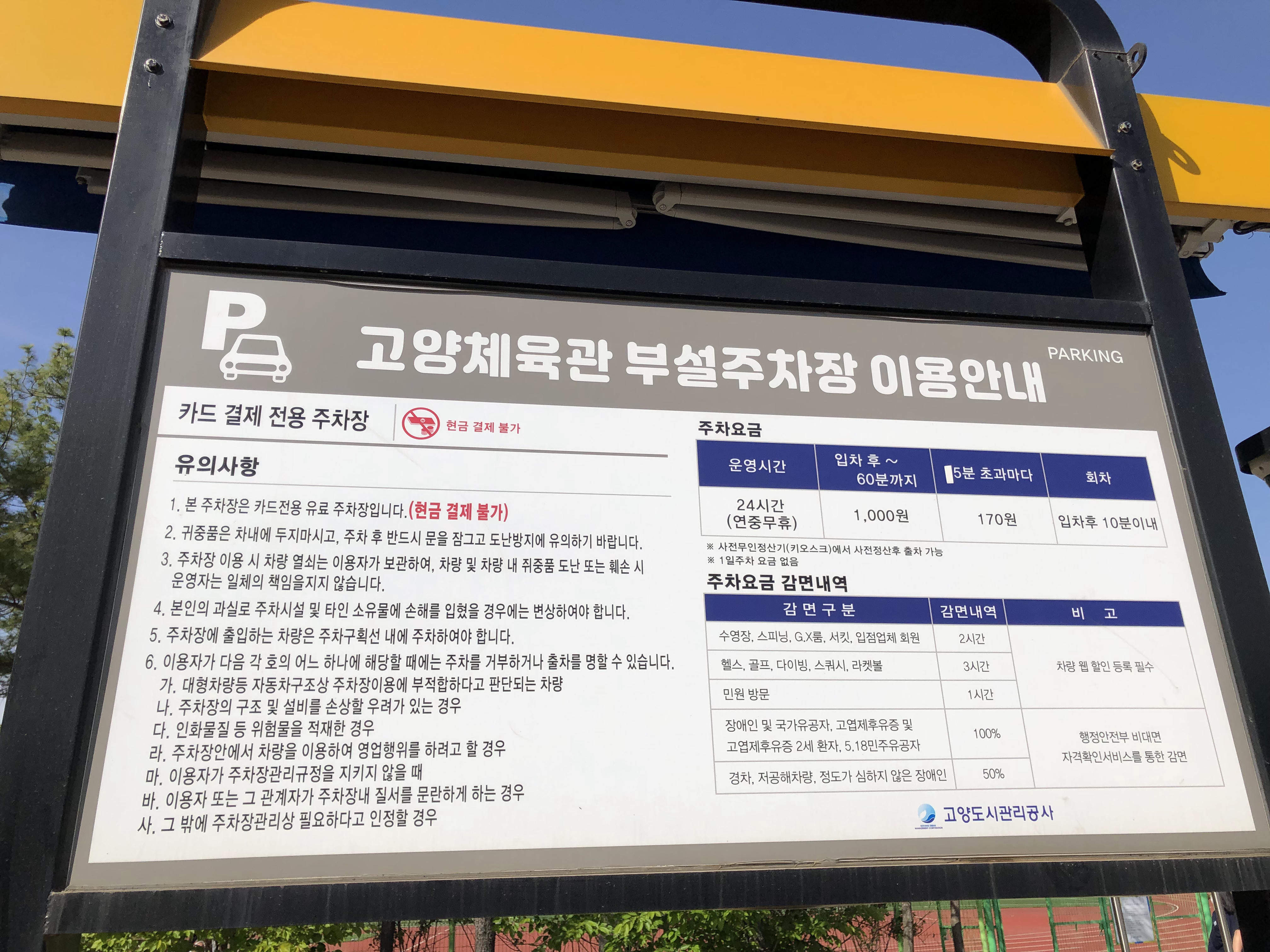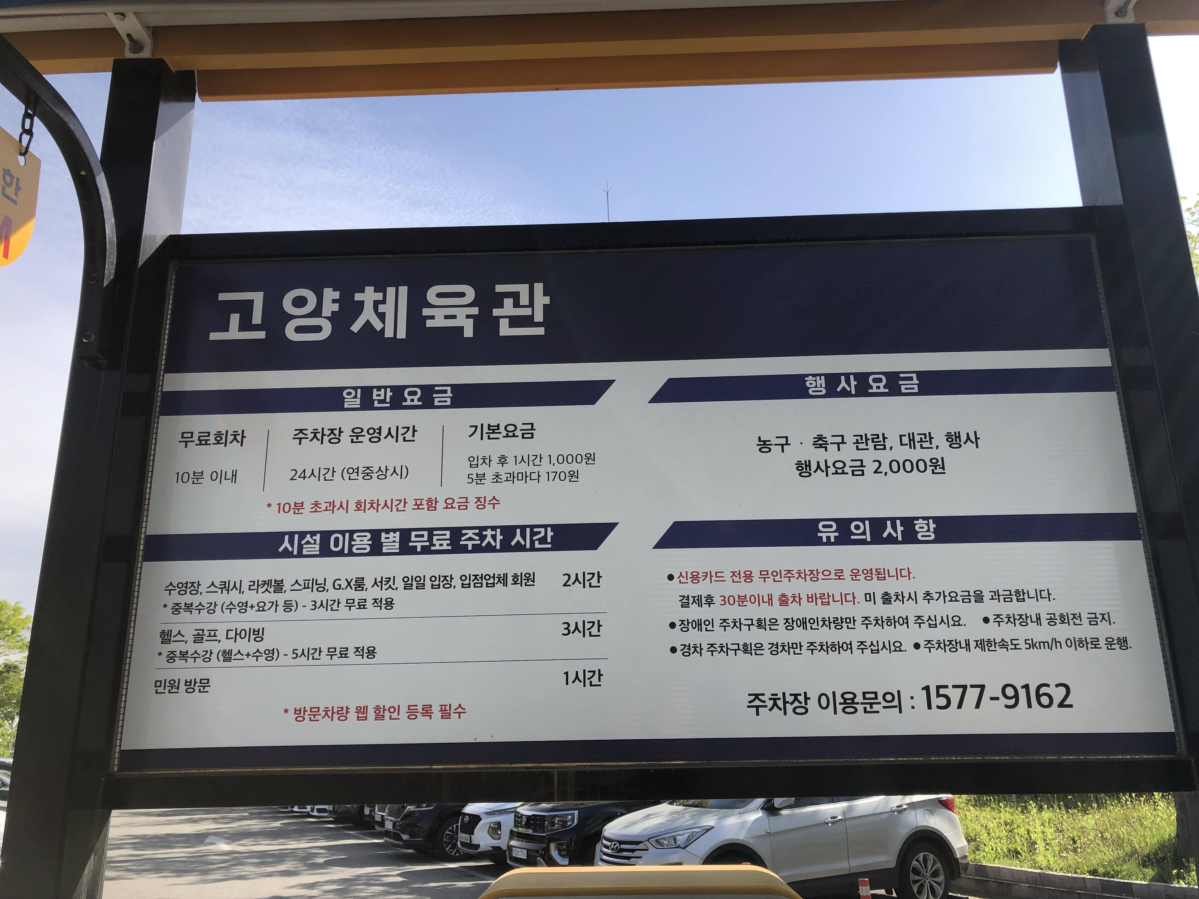 주차요금은 저렴한 편이고, 행사요금과 일반요금이 있으니 잘 확인해 주세요. (주차 이용문의는 1577-9162)