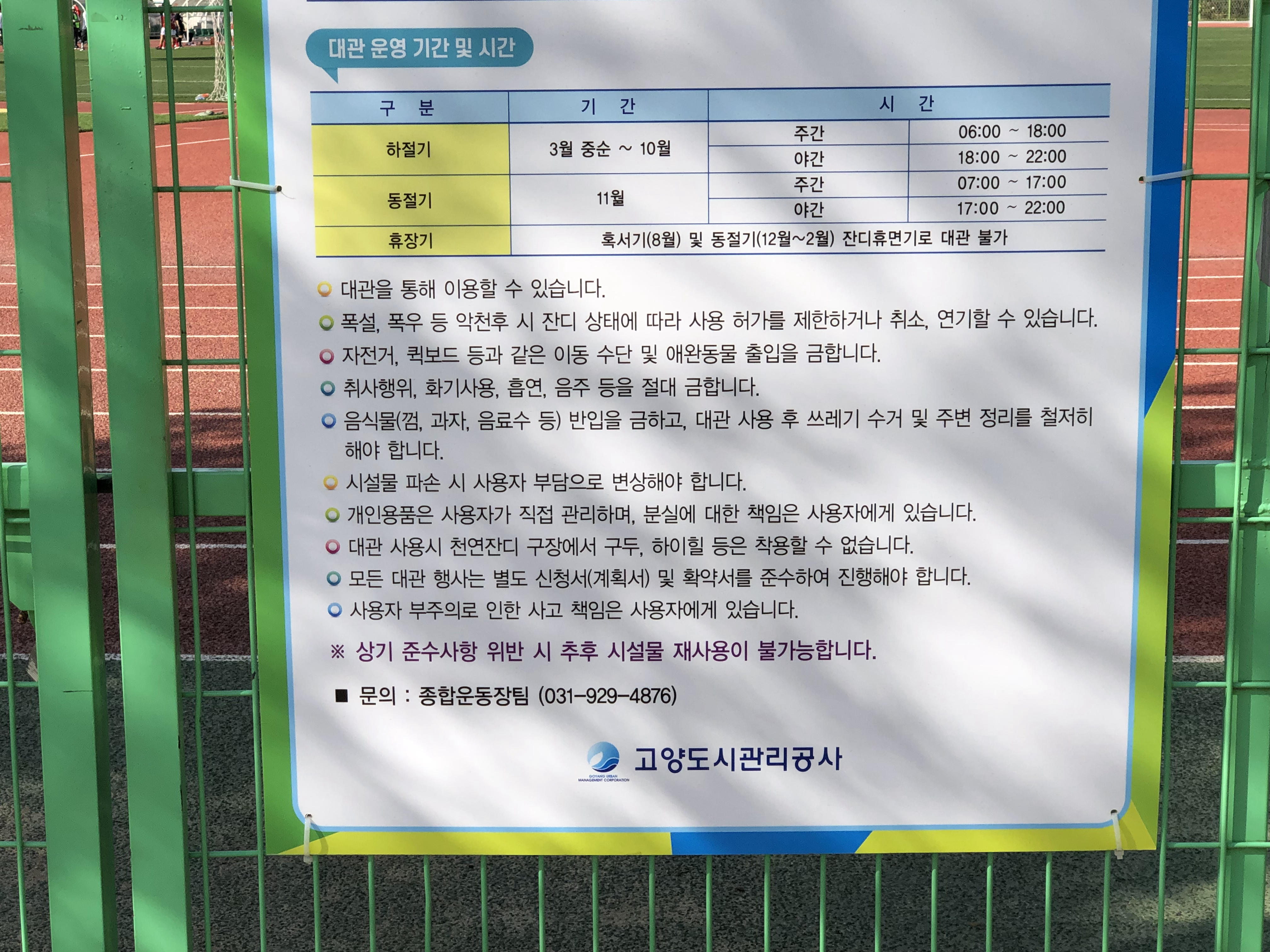 입장하는 길에 보조경기장 이용수칙을 보니 대관도 가능하군요. 가끔 회사나 지자체에서 행사도 하던데 이렇게 대관을 하는군요.