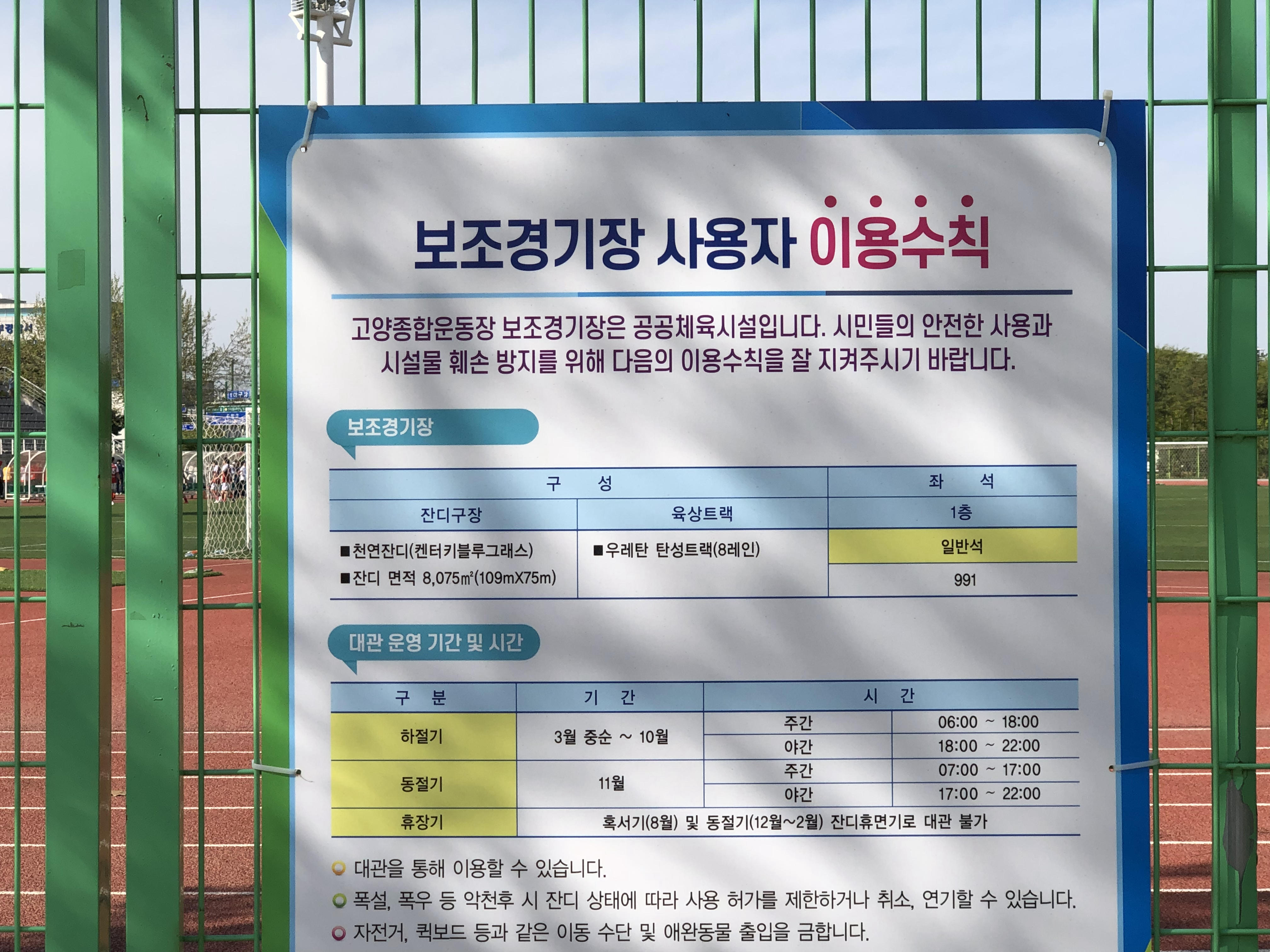 직관하려고 오시면, 고양종합운동장 바로 옆에 있는 보조경기장의 왼쪽 게이트로 <무료입장>이 가능합니다.
