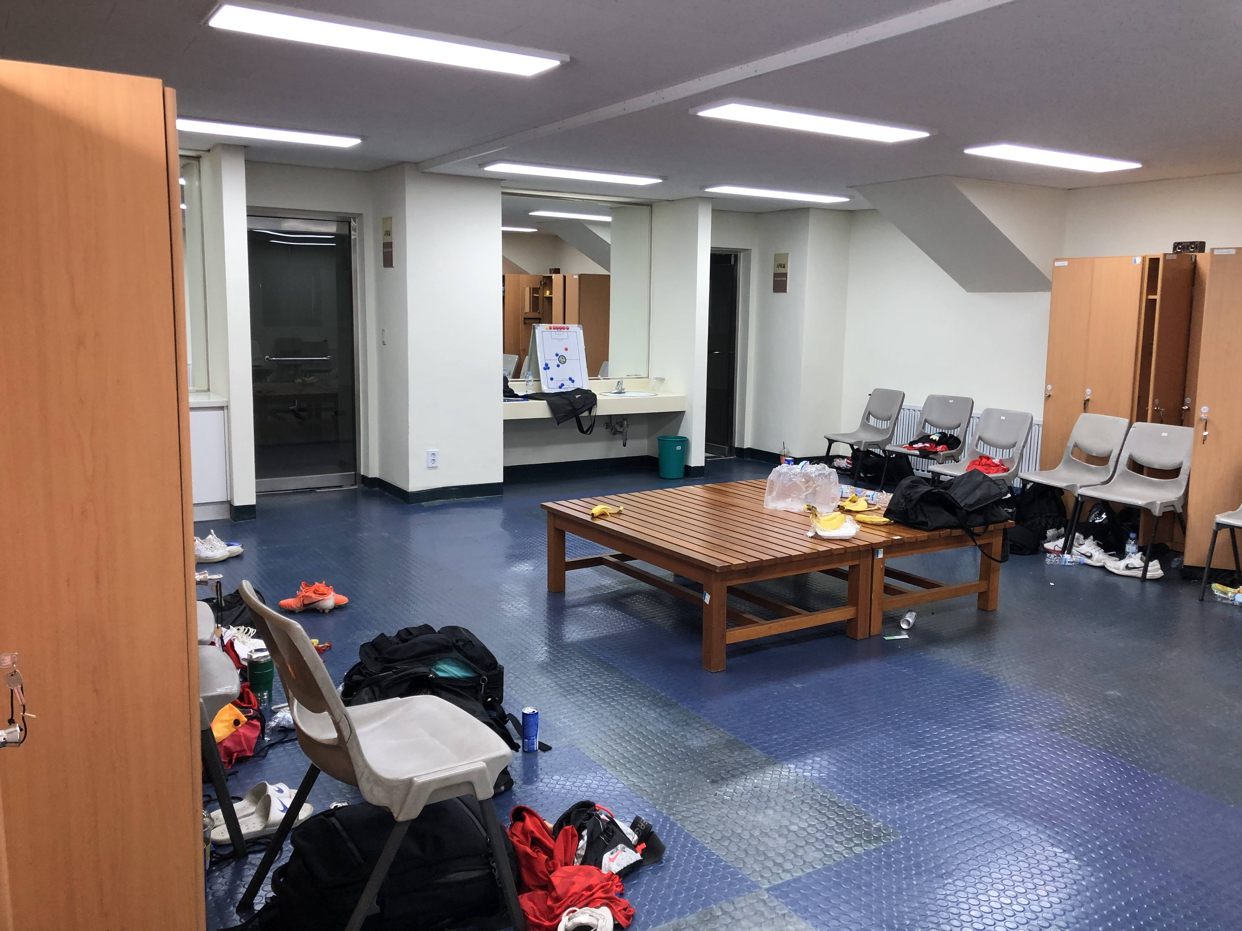 화장실 가는 길에 원정팀 라커룸도 살짝 구경했습니다.